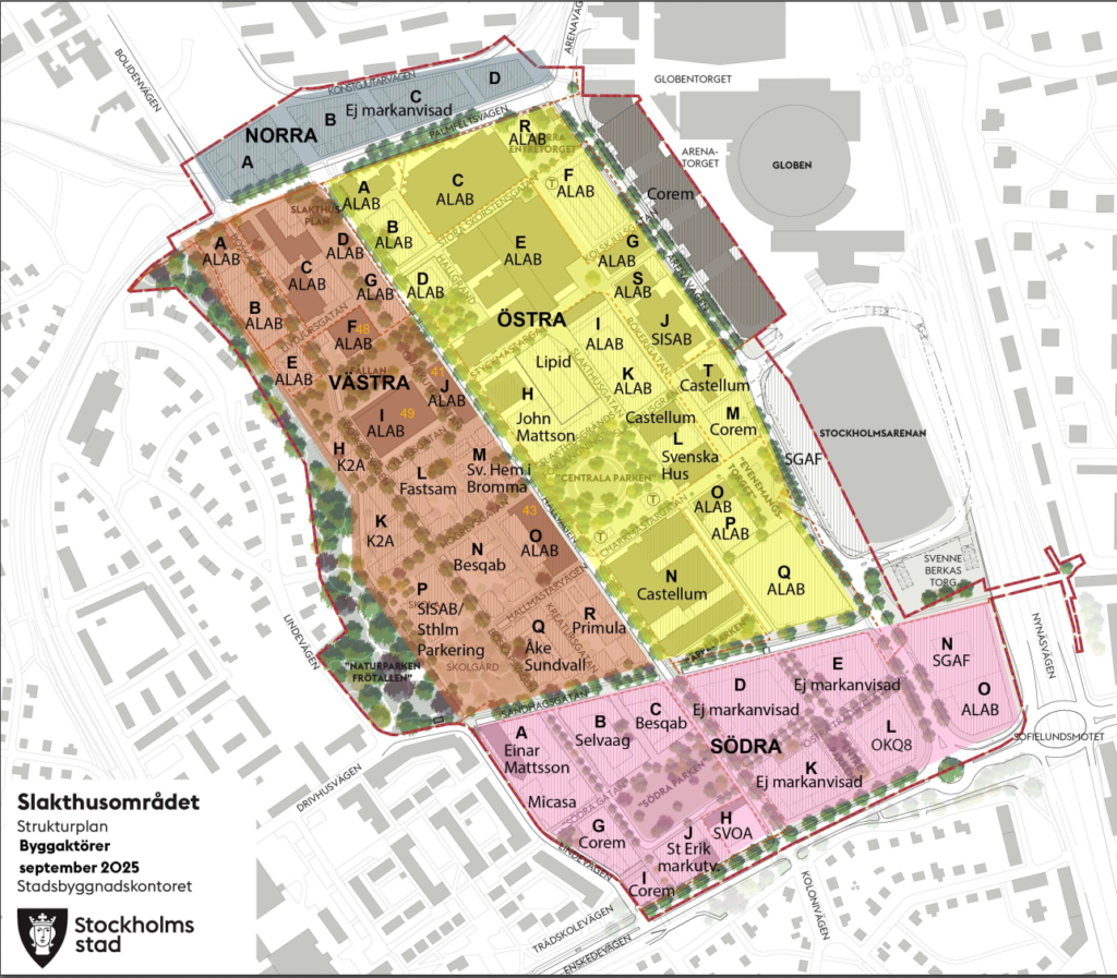 Slakthusområdet genomgår en av Stockholms mest omfattande transformationer. Från historiskt industriområde utvecklas platsen till en levande, urban stadsdel där bostäder, moderna arbetsplatser, handel och kultur integreras med nya offentliga rum som parker och torg. Projektet syftar till att skapa en ny, välkomnande destination med hög arkitektonisk och social ambition.